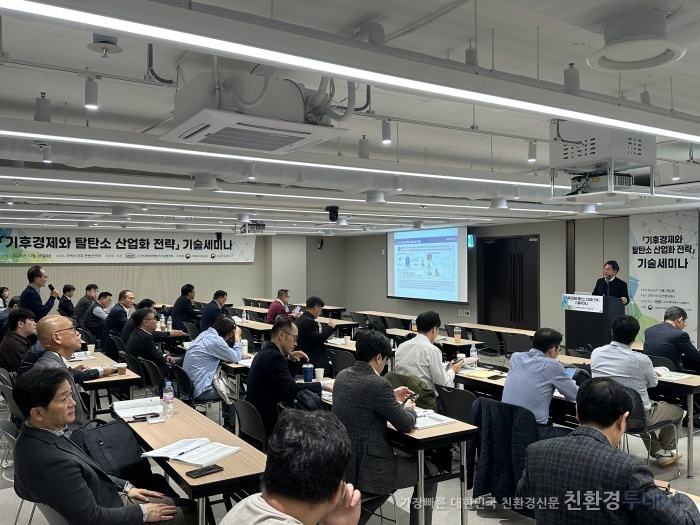 첫 번째 세션에서는 저탄소 기술 개발과 산업경쟁력 강화 방안이 논의됐다. 한국화학융합시험연구원 이봉재 센터장은 CCUS(탄소 포집·활용·저장) 통합법 시행에 따른 제품 인증과 표준 제정 현황을 설명했다. 빅텍스 임창환 상무는 탄소 포집 기술개발 현황과 실증 경험을 공유했으며, 한국환경공단 권혁 부장은 바이오가스 기반의 친환경 에너지 사업 추진 방안을 소개했다. 한양대학교 송호철 교수는 폐자원 기반 바이오차 생산 및 활용 기술 동향을 제시했다.