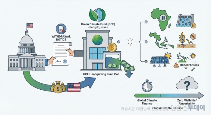 미국 정부가 인천 송도에 본부를 둔 유엔 산하 국제기구인 녹색기후기금(GCF)에 탈퇴 의사를 공식 통보했다. 세계 최대 경제 대국이자 탄소 배출 책임국인 미국의 이탈 선언으로, 개발도상국의 기후 위기 대응을 돕기 위해 조성된 글로벌 기후 금융 생태계가 붕괴 위기에 처했다.