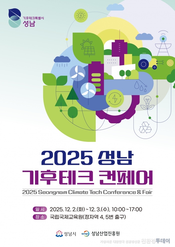 성남시가 주최하고 성남산업진흥원이 주관하는 ‘2025 성남 기후테크 컨페어’가 오는 12월 2일부터 3일까지 이틀간 성남시 분당구 국립국제교육원에서 개최된다. 전국 기초지자체 최초로 열리는 이번 행사는 기후위기에 선제적으로 대응하고, 성남 기후테크 산업의 성장 기반을 다지며 시민과 기업이 함께하는 생태계를 조성하기 위해 마련됐다.