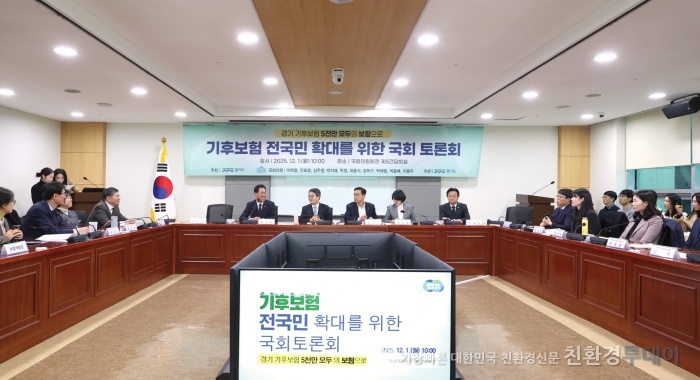경기도가 올해 지자체 최초로 선보인 '기후보험'의 전국 확대 방안을 모색하기 위해 국회의원 및 전문가들과 머리를 맞댔다. 경기도는 지난 1일 국회에서 이학영 국회 부의장, 안호영 국회 환경노동위원장 등 10명의 국회의원과 공동으로 '기후보험 전국 확대 지원을 위한 국회 토론회'를 개최했다.