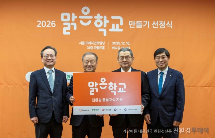 환경재단이 지난 16일 서울 프레지던트호텔 모짤트홀에서 ‘2026 맑은학교 만들기 선정식’을 열고 5차년도 지원 대상 초등학교 6곳을 최종 발표했다. ‘맑은학교 만들기’는 환경재단이 한화그룹, 사회복지공동모금회와 함께 추진하는 교육환경 개선 사업으로, 2022년 시작된 이래 전국의 학교에 공기질 개선 설비와 태양광 발전 시스템 등을 지원해 왔다.